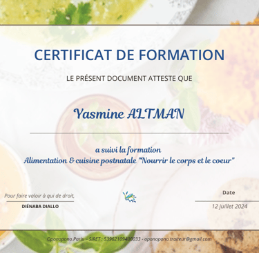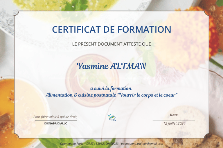 Juillet 2024: Alimentation et cuisine postnatale, Oponopono Paris