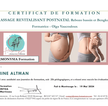 Mai 2024: Massage revitalisant postnatal, Harmonysia