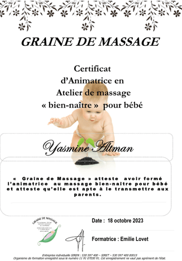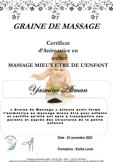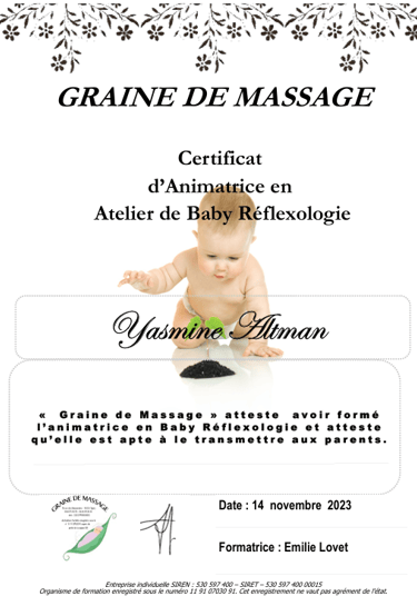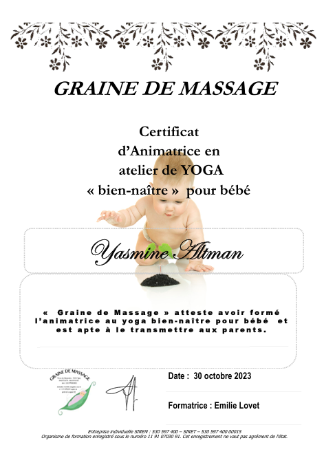 Animation d’ateliers (individuels ou collectifs) de massage, yoga et réflexologie pour bébés et enfants. Pour les particuliers et les structures de la petite enfance