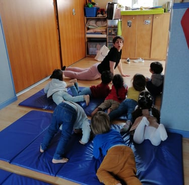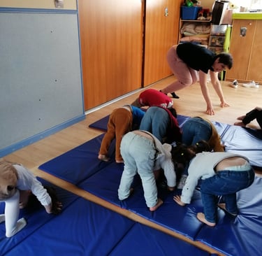 La séance de Yoga enfant comporte des postures et des activités réalisées de manière ludique, il n'y a pas de compétition ni de recherche de "performance". C'est un vrai moment de bien-être et d'amusement pour les enfants !